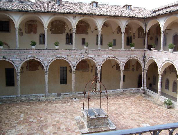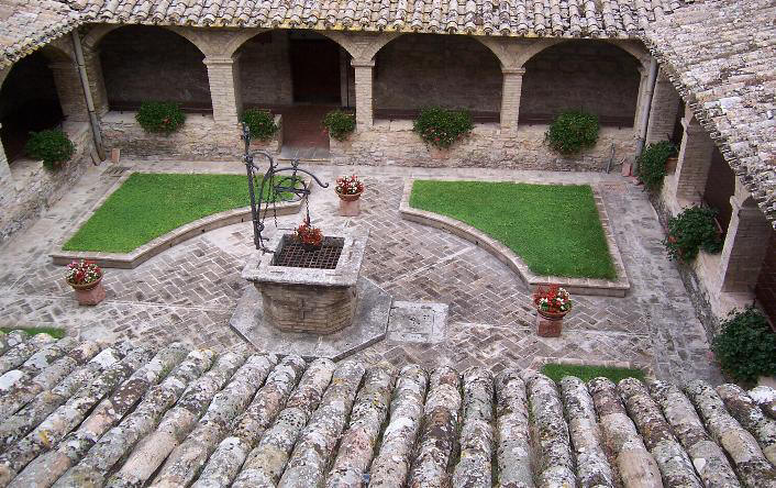 | Entriamo in silenzio nel chiostro per raccoglierci e pensiamo al giorno in cui Francesco si avvicinò al Crocifisso appoggiato alle pareti cadenti della chiesetta e lo sentì parlare "Va, ripara la mia casa che cade in rovina" gli disse e da quel momento Francesco iniziò il suo cammino di fede riparando e rigenerando l'intera chiesa. | ||||||||||