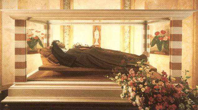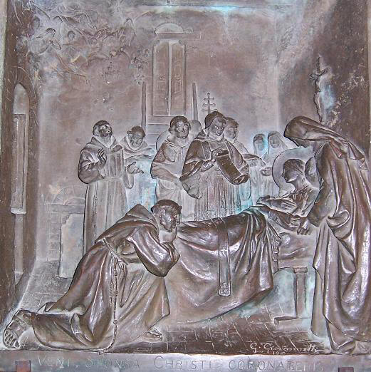 | Santa Chiara risponde sempre alle preghiere, lei occupa un posto molto speciale nel cuore di Gesù e nel cuore di Francesco, se vogliamo che la nostra preghiera trovi grazia nella compassione amorevole di nostro Signore dobbiamo affidarla a lei. Dopo averla chiamata "dolce sorella" ci alziamo e fissiamo gli occhi sul pannello che la ritrae sul letto di morte, al traguardo da lei tanto sognato, sulla soglia della vita che da quel momento per lei diventerà eterna. | |