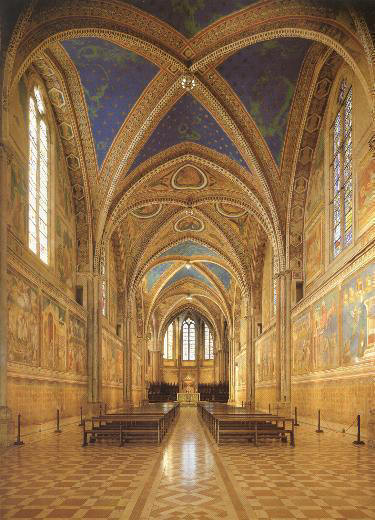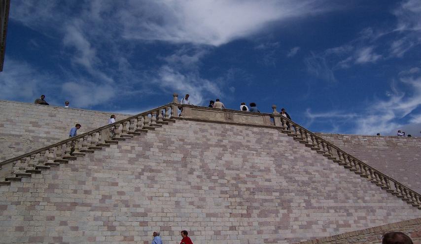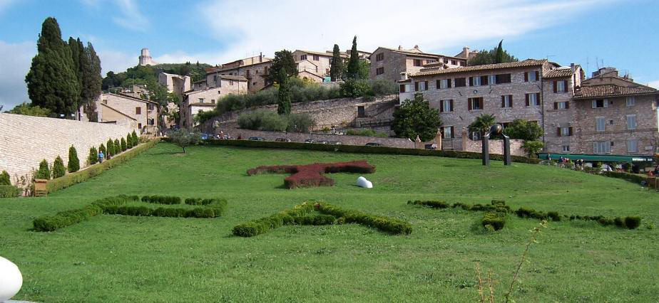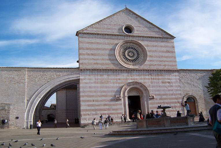 San Francesco Sul colle del Paradiso sorge la Basilica di San Francesco. Essa, voluta dal Papa Gregorio IX e seguita nei lavori dal compagno di Francesco frate Elia fu costruita per conservarvi il corpo di Francesco. Il 25 maggio 1230 il corpo di Francesco fu traslato dalla chiesa di San Giorgio (ove ora sorge la basilica di Sta Chiara), nella Basilica inferiore e occultato sotto l'altare maggiore per preservarlo da future possibili scorrerie. L' edificio si compone di due chiese sovrapposte che si aprono ognuna in una piazza diversa unite da una bellissima scalinata esterna. La Basilica inferiore fu costruita per prima, essa è una gigantesca cripta dalla forma romanica con un'unica navata ed un ampio transetto, la sua pianta è a forma di Tau, (l'ultima lettera dell'alfabeto ebraico cara a San Francesco), essa era destinata ai pellegrini ed alla venerazione del Santo. La chiesa superiore è in stile gotico, ha l'aspetto di una ampia e luminosa sala divisa in quattro campate con un transetto e un'abside poligonale, essa era destinata alle riunioni ufficiali e ad accogliere il Papa. |